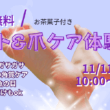 このたび「フット&爪ケア体験会」を開催することになりましたのでご案内いたします。